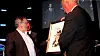 Harald Stanghelle får prisen av Carl I. Hagen. Foto: Martin Huseby Jensen