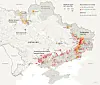 Et av Solstads nyere prosjekter, der han bruker satelittdata på temperatur til å følge krigen i Ukraina.Kart: The Economist