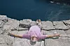 På morgenen stod han klar da turistskipene la til kai. Heller for tidlig enn for seint. Når han fotograferte turistene oppførte han seg også litt som turist. Bildene ble også litt turistaktige, tatt rett på, med blits, upolerte, rotete. Sånne snapshots som en ofte ser i fotoalbumet. Sånn ville han ha det.