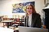 Journalisten møter henne på skolepuben, hvor hun har både