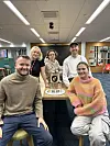 Fredag feiret VG-gjengen med kake. Fra venstre: Alfred Lindbæk Nortvedt, Maren Olava Hütt, Dmytro Maliarchuk, Kristian Møller Krystad og Tina Sletten.