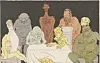 «Regjeringen Knudsen», tegnet av Ragnvald Blix, publisert i vittighetsbladet Fluesoppen. Tegning: Nasjonalbiblioteket – Blix og Gulbransson gir oss et tydelig bilde av hvilke valg satiretegnere har stått overfor i møte med makt og sensur. Gjennom deres arbeider kan vi belyse satirens grunnleggende dilemmaer – mellom maktkritikk og tilpasning, ytringsfrihet og personlige omkostninger, sier utstillingsansvarlig Kiki Fallet i pressemeldingen.