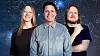 Andreas Wahl (midten), sammen med Hanne Aas og Torkild Jemterud. Foto: Robert Rønning / NRK – Jeg gleder meg vilt til å bli med i «Abels Tårn». Det er en podkast jeg har fulgt lenge, og det er en ære å få dele nysgjerrigheten for forskning sammen med kollegaene mine Hanne Aas og Torkild Jemterud, sier Wahl i pressemeldingen.