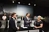 Krf-leder Knut Arild Hareide sammen med programleder Jarle Roheim Håkonsen og Frp-leder Siv Jensen. Foto: Andrea Gjestvang
