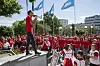 NRK-journalistene demonstrerte utenfor radioresepsjonen på Marienlyst 22. mai. Streikegeneral Jarle Roheim Håkonsen ledet demonstrasjonen. Foto: Vidar Ruud / NTB scanpix