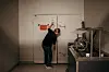Videre inn i kjelleren. 1200 hyllemeter med dokumentarkiv møter oss bak denne døra. – Dette er egentlig et bomberom. Et skikkelig dokumentarkiv. Her inne er alt av dokumenter som hører til dokumentarkivet vårt, sier Andresen og viser inn i et tettpakket rom, fylt til randen av dokumenter. Her finnes alt fra de gamle permene etter Erik Bye til lytterstatistikk fra 1927. Det er også det eneste rommet vi ikke får ta bilder i. Foto: Marte Vike Arnesen
