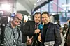 Ole Rolfsrud under sjakk-VM i New York, med mikrofonen mot Karjakin-manager Kyrillos Zangalis, og sammen med Helge Tvedten. Foto: Maria Emelianova (miss lova lova).