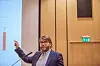 – Jeg skulle egentlig vært i Bergen i dag. Det hadde vært gøyere, sa Sigvald Sveinbjørnsson som er sjefredaktør i BA. Han pekte på at den eneste grafen han hadde med viste opplagsøkning for andre år på rad. Foto: Marte Vike Arnesen