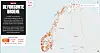Broene ble merket med prikker på kartet – gul prikk for store skader, røde for kritiske skader. På neste side er lilla prikker for broene Vegvesenet har kontroll over, på siden etter der rosa prikker for broene som mangler inspeksjoner. Skjermdump / VG.no