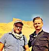 Fotograf Aage Aune sammen med Bent Skjærstad i Palmyra i Syria.