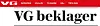 Litt etter klokken 18 i kveld publiserte VG en beklagelse på nett. I artikkelen som kun er signert «VG», står det blant annet: