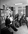 Dagbladets politiske redaksjon i 1974. Fra venstre Per Vassbotn, Arne Finborud, Gerd Benneche, Gudleiv Forr og Arve Solstad. Ifølge bildeteksten har de fått anerkjennelse for saklighet og redelighet med sin spesielle journalistikk. Bildet har som vanlig ingenting med sakene å gjøre. Vi beklager.Foto Sverre Børretzen / Aktuell / NTB scanpix