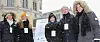 Aksjonerer i snøværet for lobbyregister. Fra venstre Guro Slettemark (Transparancy),Therese Manus (Kommunikasjonsforeningen) Kjersti Løken Stavrum (NP), Arne Jensen (NR) og Kristine Foss (NP) Foto: Kathrine Geard