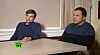 Ruslan Bosjirov (t.v.) og Aleksandr Petrov (t.h) blir intervjuet av den russiske TV-kanalen RT. Foto: Reuters / NTB scanpix