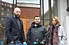 Journalisten møter NRK-journalistene (f.v) Runar Henriksen Jørstad, Martin Giæver og Irina Tjelle i Oslo tingrett under Eirik Jensen-saken. Foto: Angelica Hagen.