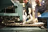 Trykker Jan Terje Evensen og daglig leder Dag Forfang sjekker trykken på de første avisene som går igjennom pressa. De første par hundre eksemplarende går ofte rett i søppeldunken før fargene er finjustert.