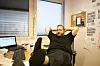 I ett av dem sitter John Ulvøy med beina slengt på bordet.