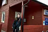 Frøydis Falch Urbye utenfor Ságats røde brakke i Karasjok. Foto: Stein Torger Svala