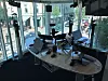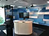 Radio- og TV-studioene er integrert, og ligger i andre etasje med vinduer ut mot gågaten tre kvartaler fra sjøen. Radiostudioet ligger i hjørnet mot Dronningens gate.