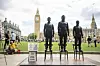 En skulptur av de tre varslerne Edward Snowden, Julian Assange og Chelsea Manning har blitt satt opp utenfor Parlamentet i London.