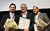 Per Anders Johansen, Andreas Bakke Foss og Fredrik hager-Thoresen mottar diplom under årets Skup-konferanse i Tønsberg. Foto: Martin Huseby Jensen