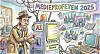 Medieåret 2025 kom og gikk. Her har KI visualisert en motvillig, menneskelig journalist som tar i bruk kunstig intelligens til å illustrere Medieprofeten 2025.