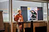Ola Jordheim Halvorsen holder foredrag om jakten på orrhanen under Fortellingens kraft-konferansen i Bergen.Foto: Morgane Fauconnier