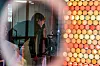 med de runde lysene i alle regnbuens farger. Her sitter Salamatu «Sally» Kamara. Hun prater mot kameraet og gestikulerer engasjert. Iblant stopper hun opp, ser ned