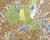 Det gule skraverte området er to tomter som kan være aktuelle på Tøyen, som helhet eller delvis. Oslo kommune eier begge. Foto: Norsk Polarinstitutt/ Kartverket/ Seeiendom.no