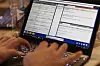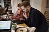 Sigrid Sollund er frustrert over at hun ikke kommer inn i dataprogrammet. Senere må hun ut en knapp time sammen med Lauritzen og Flæten for å prøve å løse problemene på pressesenteret i byen. Se større bilde her.