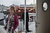 Dagsnytt 18-fan Bente Aanes prøver å komme inn på gjesteområdet, men blir som publikummer henvist til benkene på havna. Se større bilde her.