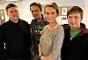 Disse har jobbet med prosjektet. Ellen Borge Kristoffersen og Eirin Aardal er ikke på bildet.Fra venstre: Ståle Hansen, Espen Andersen (utvikler), Marit Higraff og Øyvind Bye Skille. Foto: Kjersti Apenes i NRK.