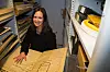 Linn Katrine Yttervik på jakt etter gamle skatter fra arkivet til lokalavisa som feiret 125 år i fjor. Foto: Privat