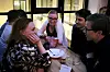 NRK-journalistene Kamilla Marie Johnsen (f.v), Anne Linn Kumano-Ensby, Gustav Iden og Arne Fredrik Næss på meklingsvake på Kulturhuset i Oslo.