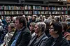 Da Gérard Biard holdt tale i forbindelse med Human-Etisk forbunds «Øverland-foredrag» i Oslo, satt kona Camille på første rad (til venstre). Til tross for at de fleste ventet lenge i kulden for å komme gjennom sikkerhetskontrollen, var hovedsalen på det gamle biblioteket full til randen.Foto: Morgane Fauconnier