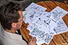 Subjekt-illustratøren sitter ofte og drodler. Det er da ideene til tegningene oppstår.Foto: Morgane Fauconnier