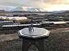 Deler av Longyearbyen på Svalbard i bakgrunn av verdens nordligste solur. Foto: Glenn Slydal Johansen