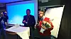 Fredag delte Jan Gunnar Furuly (til venstre) ut Finnmark Journalistlaglags journalistpris til Eilif Aslaksen (til høyre). Foto: Glenn Slydal Johansen
