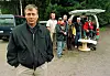 Naboene i Hedrum satte etter drapet på 12 år gamle Kristin Juel Johannessen i august 1999 opp en post ved huset til familien for å skjerme dem fra mediene. Foran står talsperson Geir Gloppe som tok på seg jobben med å håndtere pressen. Foto: Øivind Skar