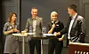 Dagbladets digitalredaktør Hildegunn Soldal (med mikrofon) og Nettavisens sjefredaktør Gunnar Stavrum til høyre. Til venstre sjefredaktør Kjersti Sortland i Budstikka og nettsjef Svein-Erik Hole i Teknisk Ukeblad. Foto: Glenn Slydal Johansen