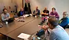 Her i valgkomiteens rom må kandidatene til NJs nye landsstyre svare for seg. Komiteen består av - fra venstre rundt bordet - Martin Riber Sparre, Ann-Magrit Berge, Jan Børge Leirvik, Leif Steinholt, Cathrine Møystad, Marit Heiene og Sven Arne Buggeland. Foto: Bjørn Åge Mossin