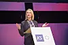 Sylvi Listhaug, her under et foredrag hos kommunesektorens organisasjon. Foto: Sondre Steen Holvik / NTB Scanpix Produksjon.