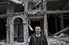 Ole Øyvind Sand Holth foran en ruin i det som var en travel handlegate.Foto: Aleksander Nordahl, Dagens Næringsliv.