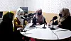 Najia Sorosh (til høyre) i studio sammen med andre ansatte i Sadai Banowan i Badakshan-provinsen nordøst i Afghanistan i mars.Foto: Sadai Banowan / AP / AP / NTB