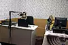 Radiosjef Najia Sorosh (til venstre) forteller at Talibans representanter stengte ned kanalens kontorer tidligere denne uka. Her er hun i studio i Badakshan-provinsen tidligere i år.Foto: Sadai Banowan / AP / NTB