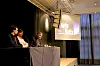 Kommentator Skjalg Fjellheim i Nordlys (til høyre) i panel sammen med journalist Tarjei Abelsen fra NRK Finnmark (til venstre) og sosiolog Kjetil Rolness. Foto: Glenn Slydal Johansen