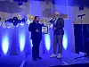 Tarjei Leer-Salvsen er kåret til Årets frilanser. Her mottar han prisen av NJ-leder Dag Idar Tryggestad.