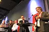 To tidligere redaktører, en fagforeningsleder, to sittende sjefredaktører og nestlederen i Norsk Redaktørforening i debatt om mediefremtiden på NJs landsmøte i fjor vår. En kvinne. Foto: Martin Huseby Jensen