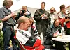 Blant journalistene og fotografene stod Ole Paus (nummer to fra høyre) og fulgte med på intervjuene.