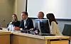 Norsk Journalistlags (NJ) nestleder Hege Iren Frantzen (helt til venstre) møtte fylkesrådsleder Tomas Norvoll i Nordland fylkeskommune til høring i Stortinget tirsdag. NJ har gått inn med advokatstøtte til Thomas Nilsen som Norvolls styreleder Stig Olsen i Barentssekretariatet sparket som redaktør i Barents Observer tidligere i høst. Foto: Glenn Slydal Johansen